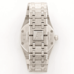 The Royal Oak Frosted Replica from Audemars Piguet is a striking watch. It features a 904L stainless steel case and bezel. both in white gold and gem-set. The crystal is sapphire and the size is 33.00mm. The Royal Oak bracelet is also 904L stainless steel. adjustable for all sizes. and features a folding clasp in white gold. The dial is gem-set and features stick and dot indices. with stick hands in 904L stainless steel.