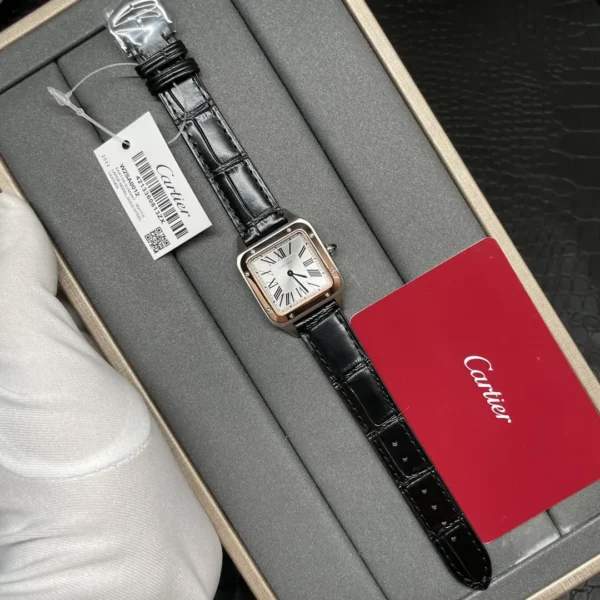 Aluminum: Silvered white sunburst finish, classic Roman numerals with sword-shaped blued steel hands, presenting Cartier’s unique aesthetic.