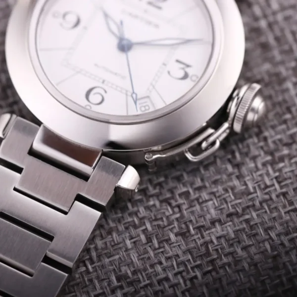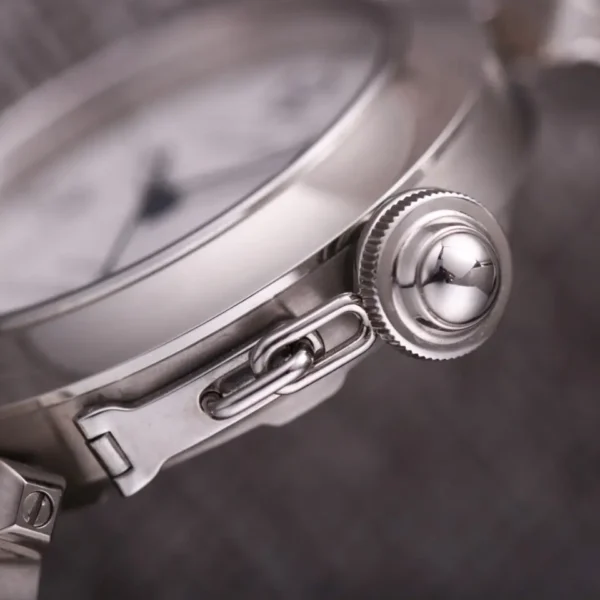The Cartier Pasha W31074M7 watch combines classic design and craftsmanship. The case is made of high-quality stainless steel, and the shape is smooth and atmospheric, showing the brand’s nobility and elegance. Its unique design is inspired by geometric aesthetics, modeling on the delicate grid and Roman numerals are reflected in the luxury. The watch has a simple quartz movement, accurate and stable timekeeping, low operation and maintenance costs to meet the needs of daily wear. The crown has been carved with fine craftsmanship and is integrated with the case, which not only enhances the waterproof performance, but also improves the overall compensation. The scratch-resistant sapphire glass effectively resists scratches and ensures long-lasting brilliance. The internal structure is meticulously crafted, and every detail reflects Cartier’s dedication to quality. Whether in business or leisure time, this watch can perform the wearer’s unique taste and fashionable style. All in all, Cartier Pasha W310 74M7 watch achieves excellent design, exquisite craftsmanship and outstanding performance, becoming the ideal choice for watch lovers and fashionable people, shaping the perfect Cartier brand of luxury fashion. This watch not only focuses on the external aesthetics, but also contains precision craftsmanship and traditional watchmaking culture, which is a tasteful and practical