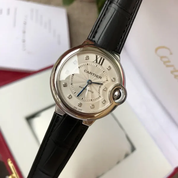 The unique design and excellent craftsmanship of the Cartier Blue Balloon W4BB0009 has won wide acclaim from watch enthusiasts. The watch features an exquisite stainless steel case with a smooth and rounded shape and a striking blue skirt, showing elegance and modernity. The Roman numerals delicately set on the Manhattan complement the slim original, and the tourbillon design is simple yet elegant, ensuring a clear time display. The compact design of the iconic balloon shape symbolizes freedom and lightness, reflecting Cartier’s consistent spirit of innovation. Inside, a high-precision automatic mechanical movement provides stable operation and accurate timekeeping, meeting the needs of daily wear and collection. The waterproof performance and wear-resistant material further enhance the practicality of the watch, which can be uniquely enjoyed in both business formal wear and casual wear. The strap is adjusted to fit comfortably and is full of beautiful details, and each process is realized with the spirit of craftsmanship. The overall design not only inherits the brand’s classic, but also carries modern fashion concepts, making the watch both artistic and practical.W4BB0009 is not only a timekeeping tool, but also a fashionable and tasteful art boutique, suitable for wearing on various occasions. Every detail of this timepiece is designed with the designer’s ingenuity, giving the watch infinite vitality.