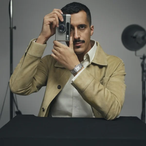 Featuring an 18K yellow gold case measuring 33.7mm x 25.5mm and 6.6mm thick, this watch is suitable for wearers seeking sophistication and understatement. The smooth lines of the case reflect Cartier’s usual design aesthetic. The bead-shaped crown is set with gemstones, adding a touch of elegance to the overall design. The black lacquered countertop with its sword-shaped, gold-set steel bracelet provides clear readability. The mineral crystal ensures the beauty and durability of the dialog box. The semi-matte black alligator strap is accentuated by a gold pin buckle clasp, enhancing comfort and security.