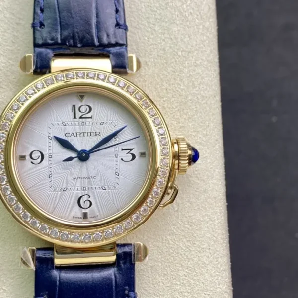 Cartier Pasha series WJPA0012 watch fusion of classic elegance and fashion, is the exquisite work of Cartier national craftsmanship. The watch is made of high stainless steel case, after precision casing carries out a unique glass and surface, the body of low-key luxury. The body design is simple and atmospheric, with eye-catching Roman numerals and delicate hands combination composition, supplemented by fine texture and just the right gold plating decorations, not only inherited the traditional art of watchmaking flavor, but also into the contemporary design concept. The watch face is covered with an abrasion-resistant sapphire crystal that protects against everyday scratches and ensures time readability. The built-in automatic Swiss winding watch is both practical and ornamental, with waterproof function, adaptable to business, leisure and other occasions. Exquisite details and craftsmanship in the complex etiquette and appearance of the design are unique mark, each carving and decoration are Cartier brand emphasizes style. Cartier’s dedication to the pursuit of quality is reflected in every aspect, whether it is the appearance of the design or mechanical performance, reflecting the perfect fusion of traditional craftsmanship and modern technology, so that this watch has not only become an accurate timekeeping tool, but also a work of art, everlasting, heartwarming.