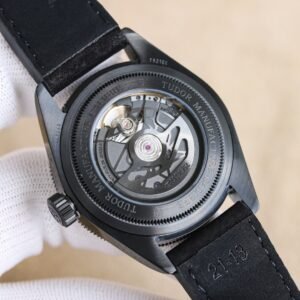 **Deep as night, with sharp edges exposed. The Tudor Bi Wan Black Warrior Back Transparent Watch inherits the rugged style of the Black Warrior series, and with a transparent back, it captures the beauty of precision machinery operation. **Matte black ceramic bezel, forged at high temperatures, hard and wear-resistant, showcasing extraordinary taste in a low-key manner. The one-piece molded mid-level case features smooth lines, sturdy and reliable design, showcasing the exquisite craftsmanship of the Emperor. **The black, blue, and white dial is simple and elegant, paired with luminous hands and hour markers, making the time clear and easy to read day and night. The iconic snowflake pointer inherits the classic design of Tudor and stands out even more fiercely against a black background. **The Tudor black back transparent movement, through the sapphire crystal back, reveals the precise operation of the movement. The finely crafted automatic tourbillon is embellished with sandblasted details and engraved patterns, showcasing Emperor Tuo’s ultimate pursuit of details. Ultra high power reserve, accompanying you to conquer every challenge. **The rotatable outer ring is adorned with laser etched digital scales to meet professional diving needs. **The Di Tuo Bi Wan Black Warrior Back Through Watch is not only a wrist watch, but also a masterpiece of mechanical art appreciation. It belongs to urban elites who pursue excellence and extraordinary taste, with a fearless attitude, controlling time and life. **The watch size 41 paired with a black leather strap meets the wearing needs of different occasions. **The Dito Biwan Black Warrior back watch, the Eye of the Dark Night, opens up a mysterious world of mechanical beauty for you.