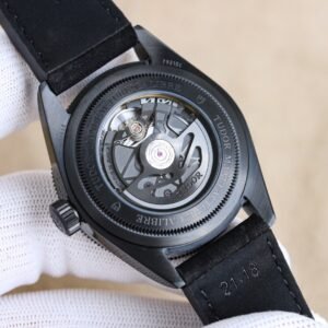 **Deep as night, with sharp edges exposed. The Tudor Bi Wan Black Warrior Back Transparent Watch inherits the rugged style of the Black Warrior series, and with a transparent back, it captures the beauty of precision machinery operation.