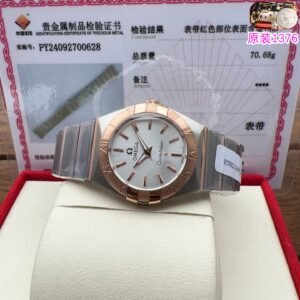 The iconic “claws” of the Constellation series and the frosted bezel with Roman numerals in the same color scheme give the watch a unique craftsmanship. The watch is equipped with the Omega 1376 movement inside.