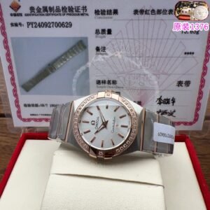 The iconic “claws” of the Constellation series and the frosted bezel with Roman numerals in the same color scheme give the watch a unique craftsmanship. The watch is equipped with the Omega 1376 movement inside.
