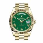 Introducing the Rolex Day-Date 40 Gold Green Roman Dial 228238  a symphony of elegance and precision. a timepiece that seamlessly merges sophistication with remarkable functionality. This exquisite watch. a proud member of the prestigious Day-Date family. is designed to cater to the most discerning watch enthusiasts. providing an experience that is unparalleled in the realm of luxury timepieces.