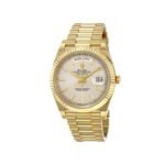 The Rolex Day-Date 228238 Yellow Gold Silver Diagonal Dial Replica is a stunning watch. It features a 904L stainless steel case with a yellow gold color and a sapphire crystal. The movement is an automatic caliber 3255 with a power reserve of 60 hours and a precision of (-3/+3 sec/day) within COSC certification limits. The bracelet is made of 904L stainless steel with an adjustable link and a fold clasp in yellow gold..