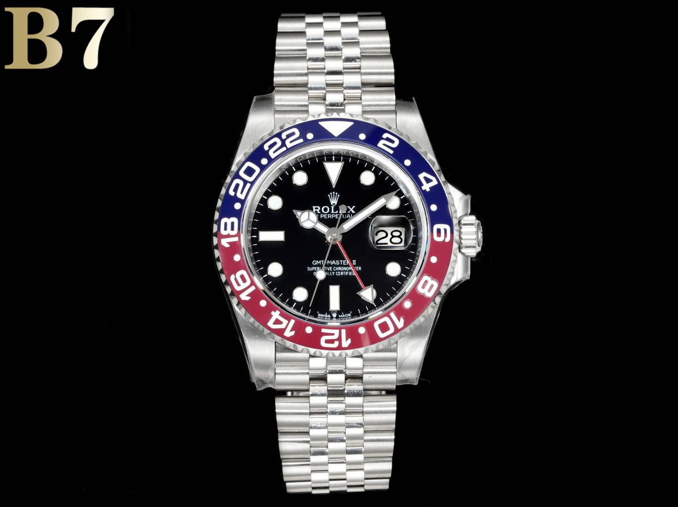 Made of genuine 904L steel, the ceramic platinum font ring mouth formed in one piece is consistent with the genuine product. The all-new 3285 integrated movement. Synchronize genuine GMT needles by adjusting the time and calendar in both forward and reverse directions, with universal original accessories. 904L steel case bracelet, sapphire mirror, super luminous, two-way ceramic rotating bezel, folding clasp