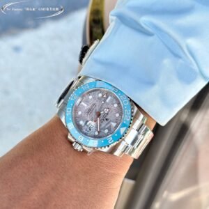 The dazzling ceramic bezel of Rolex Greenwich II adopts high-precision high-temperature firing and splicing technology, as well as laser engraved neat dual time zone scales, which are filled with platinum plating to highlight elegance and luxury! The overall impression shows a low-key yet luxurious feel!