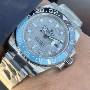 The dazzling ceramic bezel of Rolex Greenwich II adopts high-precision high-temperature firing and splicing technology, as well as laser engraved neat dual time zone scales, which are filled with platinum plating to highlight elegance and luxury! The overall impression shows a low-key yet luxurious feel!