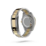 The two-tone bezel. a harmonious blend of yellow gold and caramel. further enriches its luxurious appeal. Meanwhile. the bracelet crafted from the same 904L stainless steel and coupled with a fold clasp in steel and yellow gold ensures not only adjustability but also a snug. secure fit on your wrist. This bracelet’s seamless integration with the case reflects Rolex’s commitment to both form and function.