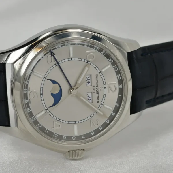 The Fiftysix 4000E/000A-B439 watch by Vacheron Constantin is a classic that combines retro aesthetics with modern craftsmanship, inspired by the brand’s classic design from 1956. This watch is made of stainless steel material, showcasing a perfect balance between elegance and sporty style, suitable for daily wear and formal occasions.