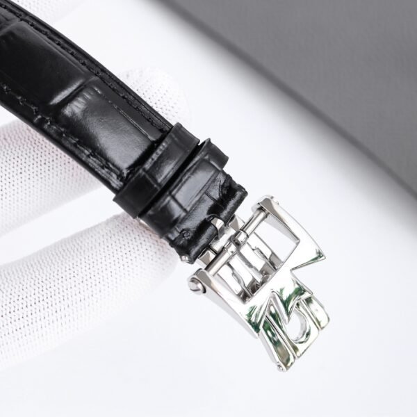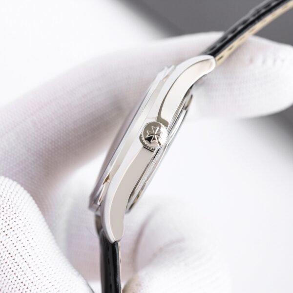 The self-winding Vacheron Constantin caliber 1326, with a power reserve of 48 hours, is revealed through a transparent sapphire caseback that reveals its fine finishes, such as Côtes de Genève and pearlescent dots.