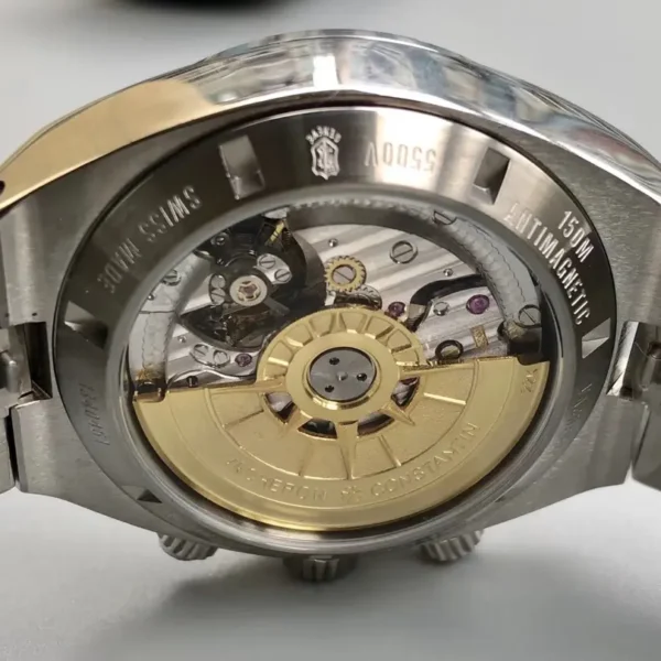 The Vacheron Constantin Four Seas series 5500V/110A-B075 watch combines classic craftsmanship with modern aesthetics. This men’s watch is equipped with a caliber 5200 automatic movement mechanism, with 52 hours of power reserve and 54 gems, certified by drilling to ensure precision and stability. The diameter of the watch case is 42.5 millimeters and the thickness is 13.7 millimeters. It is made of stainless steel material and has undergone fine polishing treatment. The sapphire crystal mirror and transparent back are used to achieve a precise and beautiful structure. The panel auxiliary design is simple, with a silver white color tone and textured surface texture. The layout of the hour hand, minute hand, and electroplated sub plate is reasonable, both beautiful and attractive. Function and rich ornamental value. Watches have practical functions such as dating, demagnetization, and timing, making them suitable for both business and leisure occasions. Multiple watch straps are available for selection, and metal chain straps are also available for easy replacement and comfortable wearing. Every place gathers Vacheron Constantin’s strict requirements for watchmaking art, pursuing classic works that combine technology and fashion style, and are highly favored by watch enthusiasts. This watch not only represents Vacheron Constantin’s century long heritage, but also embodies the essence of Swiss watchmaking in detail,