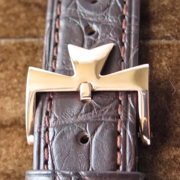 The dark brown Mississippi alligator strap with 18K rose gold pin buckle is comfortable to wear and shows the gentleman’s style. Water-resistant to 30 meters, it is suitable for daily wear. The overall design is vintage yet modern, making it an ideal choice for watch lovers and collectors.